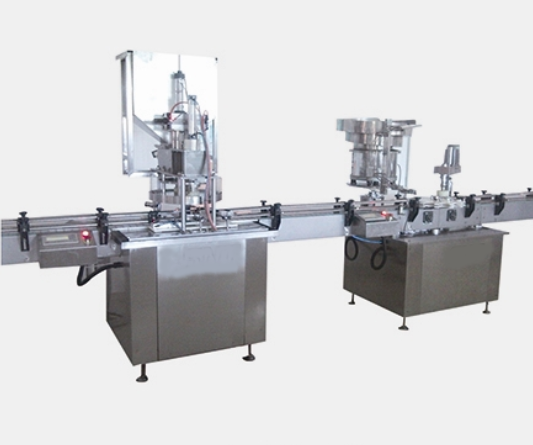 This production line includes sauce filling machine, cap loading machine and cap scewing machine.